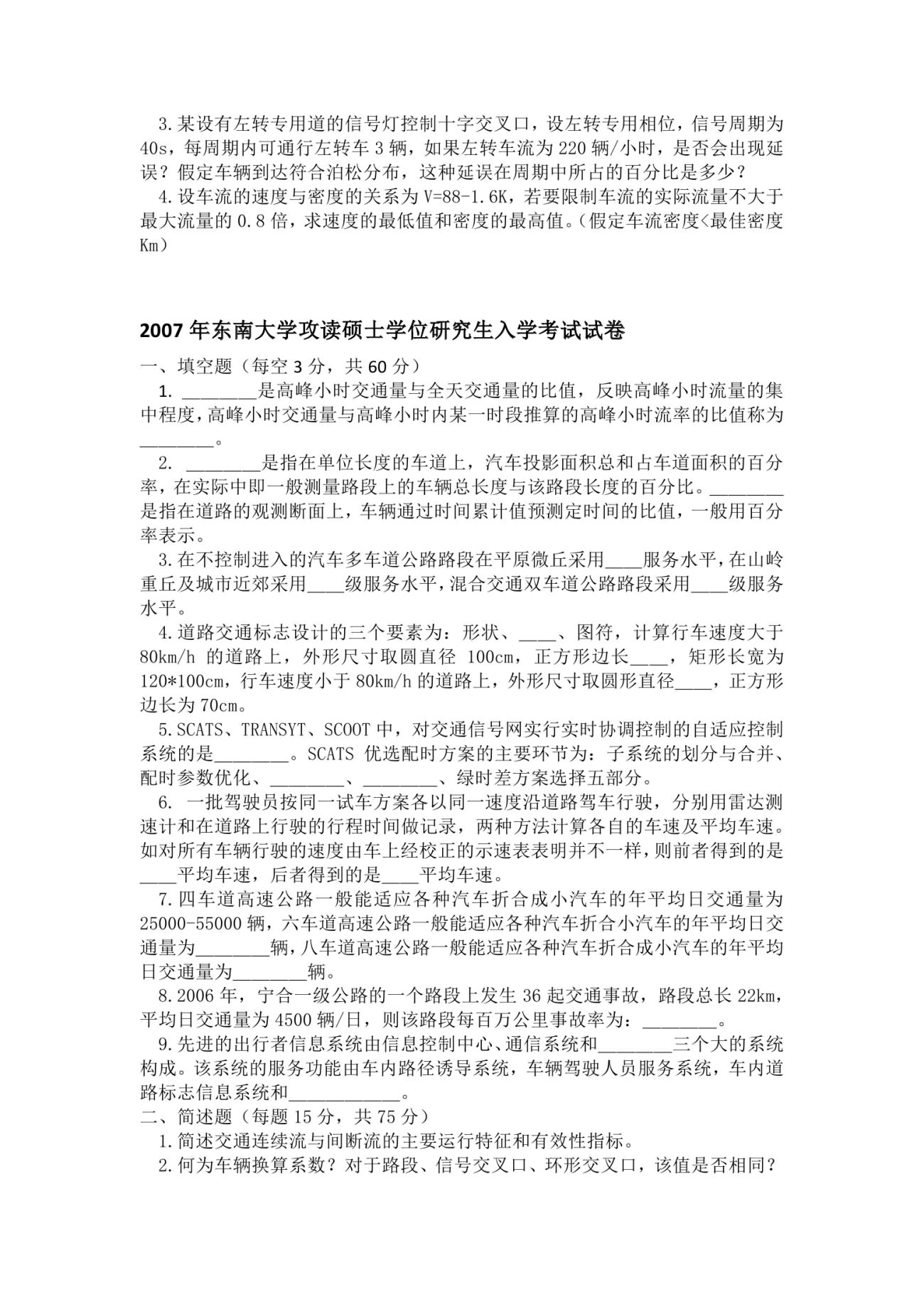 专业课考研资料 本站小编 福瑞考研网 2017-04-27 历年攻读硕士学位研究生入学考试试题试题编号:51试题名称:交通工程学基础1992年:一.在一条长度为24公里的干道起点断面上,于6分钟内观测到汽车100辆通过,设车流是均匀连续的且车速V=20公里/小时,试求流量(q)、时距(ht)、空距(hd)、密度(K)以有第一辆汽车通过此干道所需时间(t)[以分钟或小时计均可]。(15分)二.某路段 ...