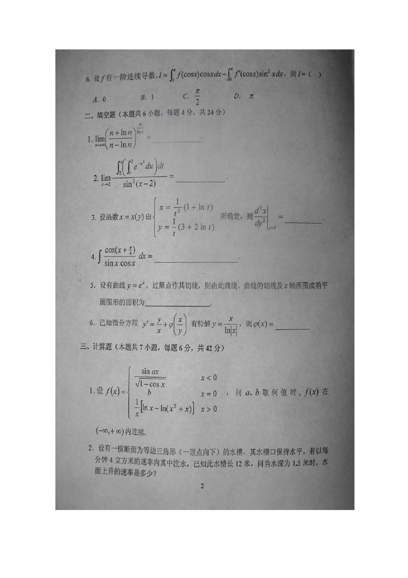 中国地质大学(北京)2003-2009年610高等数学考研真题(14)