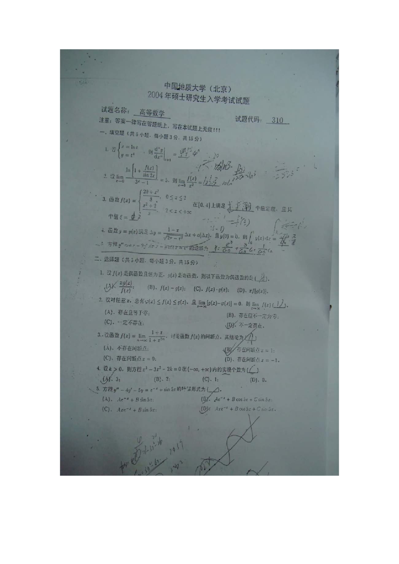中国地质大学(北京)2003-2009年610高等数学考研真题(4)