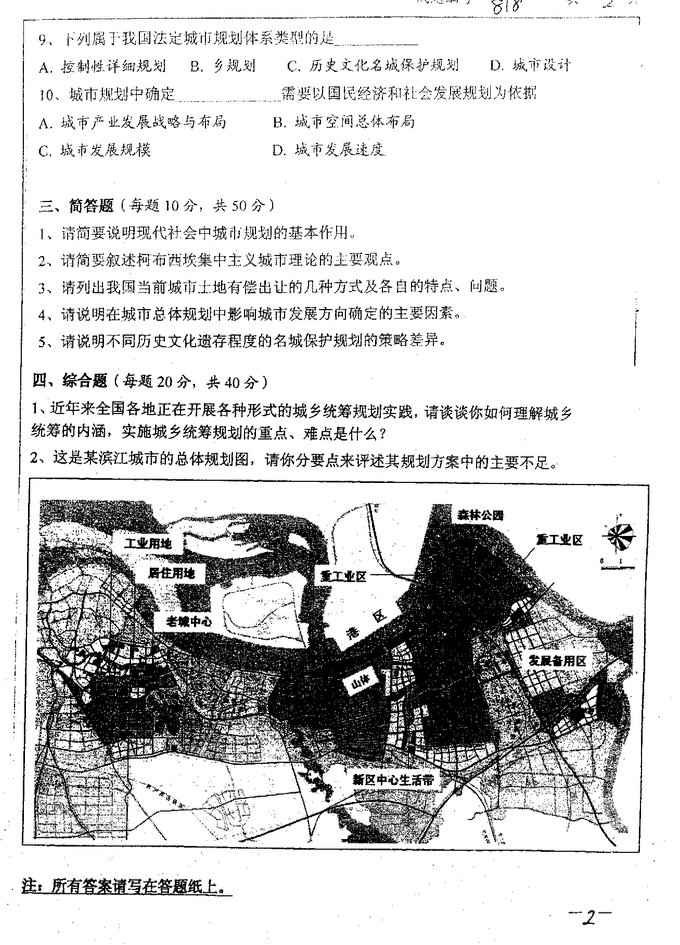 2007-2017年南京大学城乡规划专业考研真题(8)