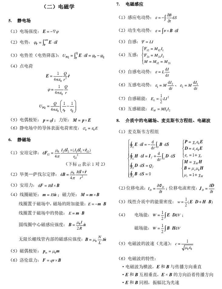 考试科目:848普通物理(二)一、复习要求:普通物理是物理学科各个专业共同的基础课程,它的内容应包括力学、热学、电磁学、振动和波、光学、原子物理和原子核物理等几个部分。本大纲要求考试力学、热学、电磁学、振动和波、光学这五部分。要求考生对这五部分的基本概念有较深入的了解,掌握其基本定律、原理和定理,具 ...