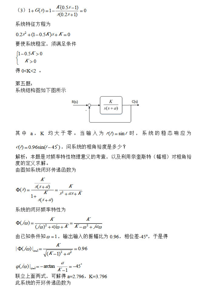 2018年福州大学812自动控制原理初试真题回忆1、已知结构图和特性方程,求传递函数参数。就是用梅森公式解,不难。 2、已知某二阶系统经过PD 修正后,给出求出c(t)=1-1.01e^(-1.5t)sin(2.6t+83.6) ,求超调量和调节时间。3、已知已知闭环多项式(没有给出具体的式子) ,试用劳斯判据分析已圆心为(-a ,j0)半径为a 的圆 ...