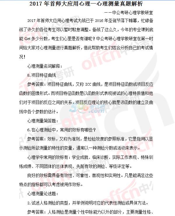 历史学作为统考科目,真题是最好的复习资料,它的出题水平和含金量是任何其他的辅导资料都不能匹敌的。考生们可以通过对过往真题的分析了解以下几个方面的内容:命题的风格(如难易程度、考点的覆盖情况等)、具体分值分布、考试重点、难点、偏点等。小编通过总结给考生们介绍一些使用真题的方法:(1)分类复习真题的时候 ...历史学考研招生 本站小编 免费考研网 2018-01-032016年考研心理学考试真题(简答+综合)