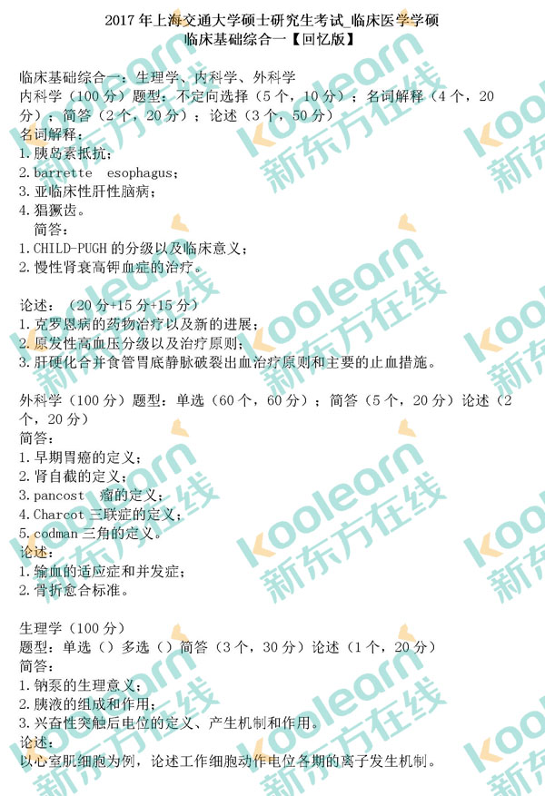 2017年上海交通大学临床医学真题 ...专业课考研资料 本站小编 免费考研网 2018-01-032017年首都师范大学心理学347应用心理考研真题