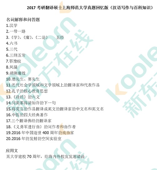 2017考研翻译硕士上海师范大学真题回忆版-百科知识