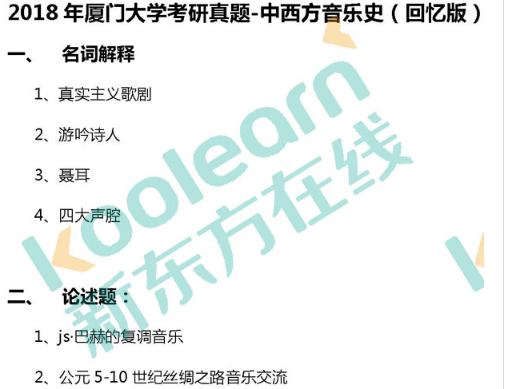 相关话题/考研真题 厦门大学 音乐史 中西方