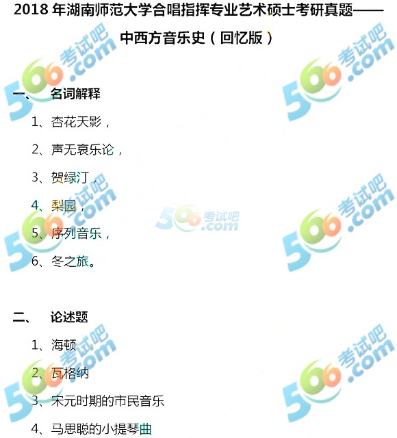 湖南师范大学2018艺术硕士中西方音乐史考研真题
