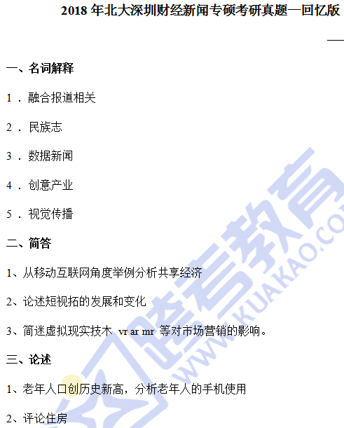 2018年北京大学深圳财经新闻专硕考研真题(回忆版)