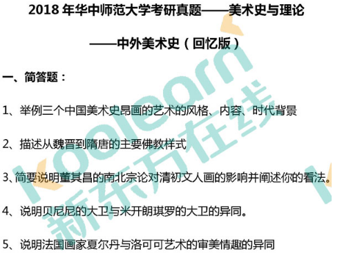 2018年华中师范大学考研真题美术史与理论中外美术史(回忆版)