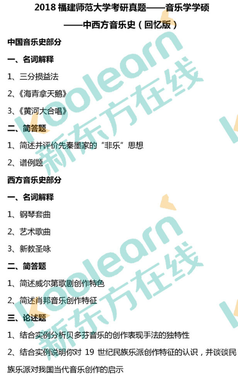2018年福建师范大学考研真题音乐学学硕中西方音乐史(回忆版)