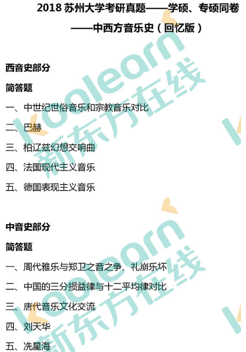 2018年苏州大学考研真题学硕专硕同卷中西方音乐史(回忆版)