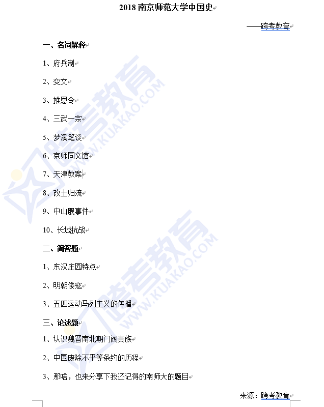 福建师范大学考研真题音乐学学硕中西方音乐史(回忆版) ...专业课考研资料 本站小编 免费考研网 2018-01-032018年南京大学中国近现代史考研真题—回忆版