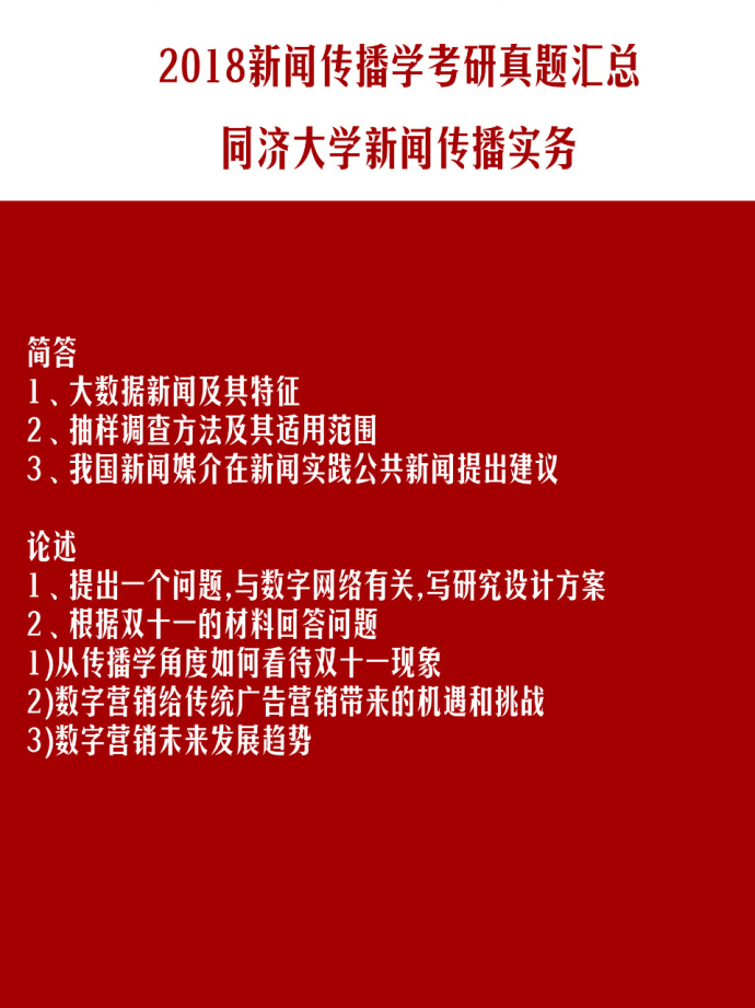 同济大学2018年考研新闻传播实务真题