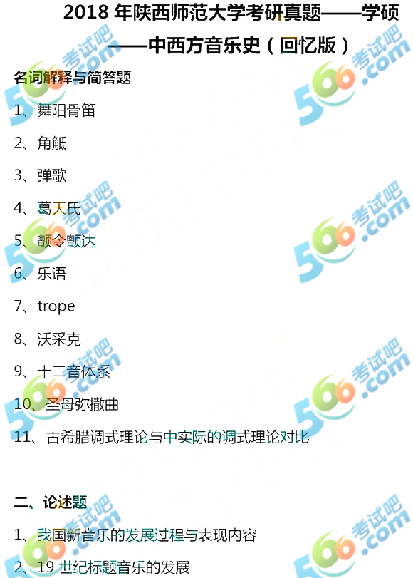 专业课考研资料 本站小编 免费考研网 2018-01-03西安音乐学院考研真题学硕中西方音乐史(中音史部分回忆版) ...