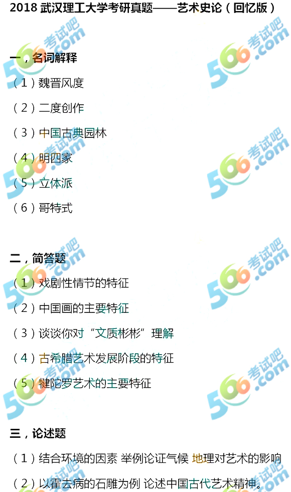 专业课考研资料 本站小编 免费考研网 2018-01-03武汉理工大学考研真题-艺术史论(回忆版) ...