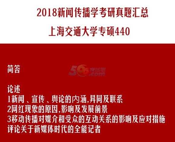 专业课考研资料 本站小编 免费考研网 2018-01-03上海交通大学2018考研专硕440新闻传播学真题 ...