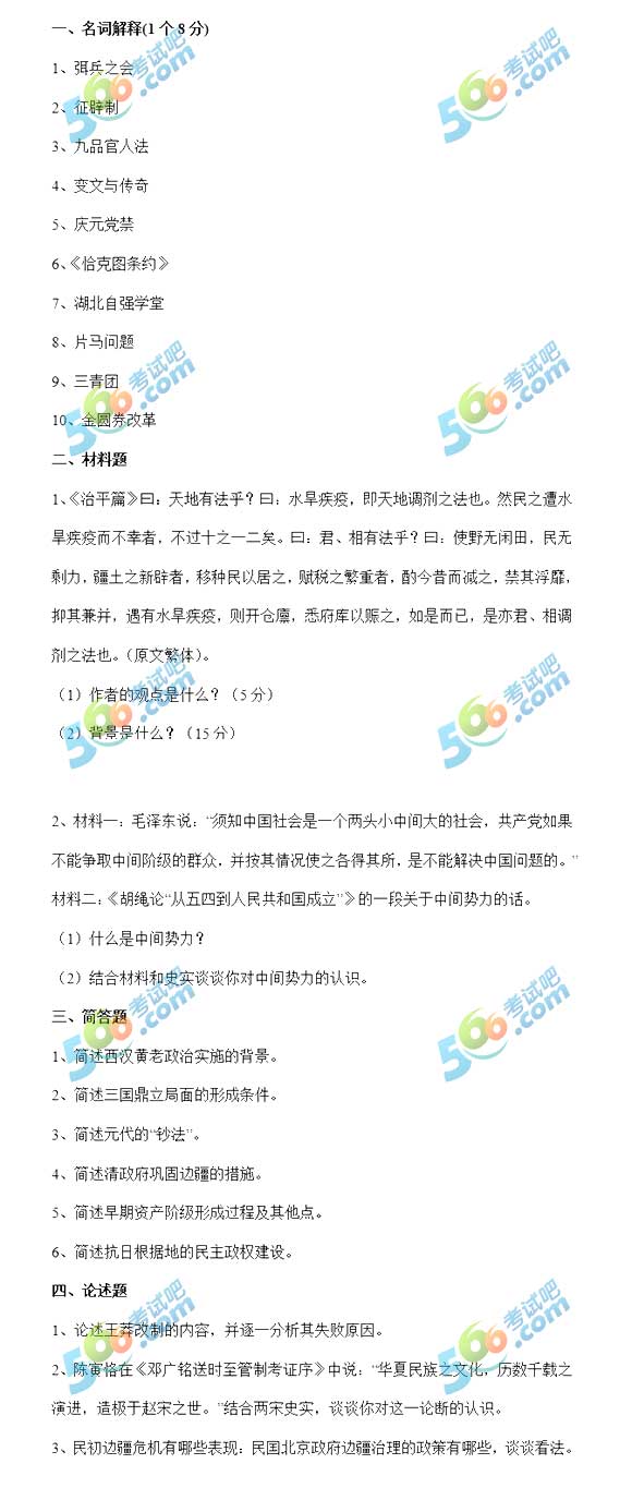 专业课考研资料 本站小编 免费考研网 2018-01-03云南大学642中国史基础考研真题回忆版 ...
