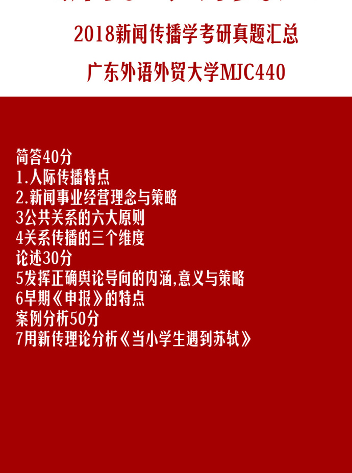 广东外语外贸大学2018考研440新闻传播学真题