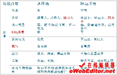1、水环境和陆生环境有哪些不同? 植物在适应方式上又有何不同?