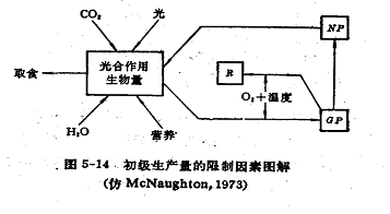 净初级生产量(net primary production):初级生产过程植物固定的能量一部分被植物自己的呼吸消耗掉,剩下的可用于植物的生长和生殖,这部分生产量成为淨初級生产量(NP)