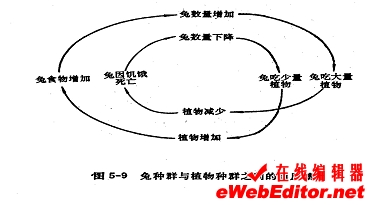 另外组分的变化导致前一组分的变化的减弱从而调整或控制变化的幅度即负反馈,如捕食者种群与被捕食者种群之间所表现出动态关系即负反馈