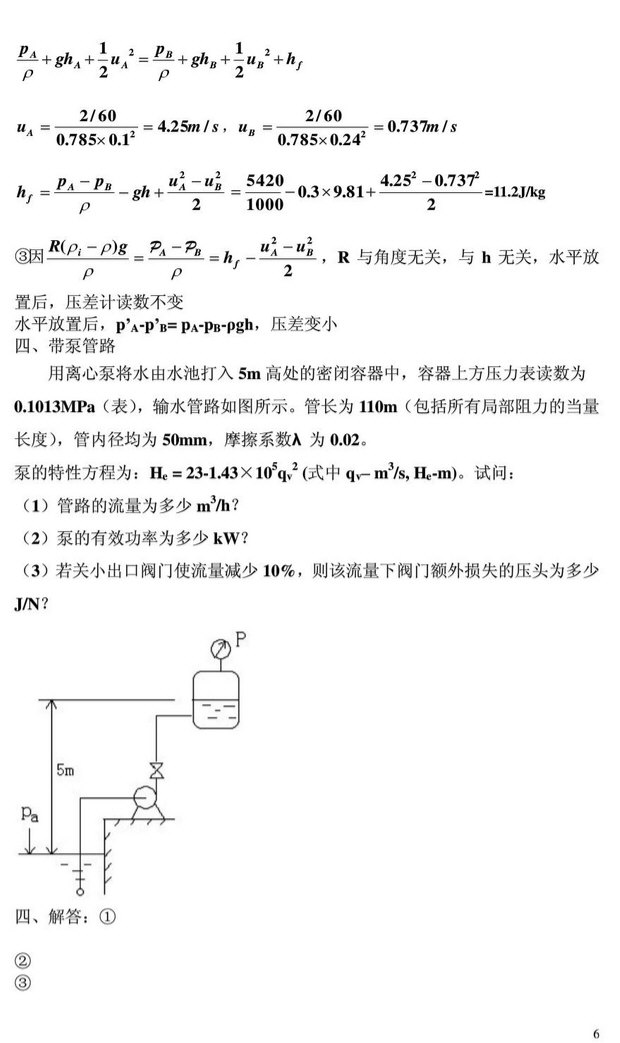 • 化工原理(华东理工大学)-流体机械输送-[考研大题]