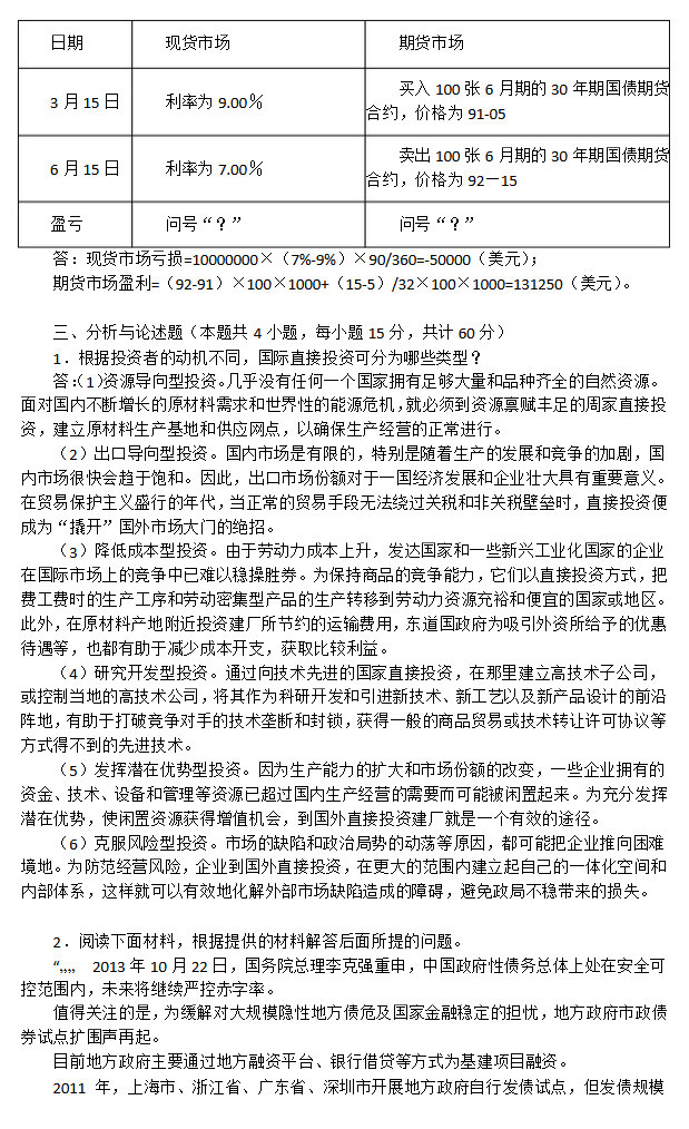 一、名词解释  1.格雷欣法则  2.金融衍生工具  3.丁伯根原则  4.国际储备  5.外债  6.有效资本市场  7.托宾Q  8.特别提款权  二、简答题  1.一般性货币政策原则及其传导机制  2.影响汇率变化的因素  3.利率期限结构理论  4.国际货币体系的内容及其演变  三、论述题  1.对金融创新的认识   ...