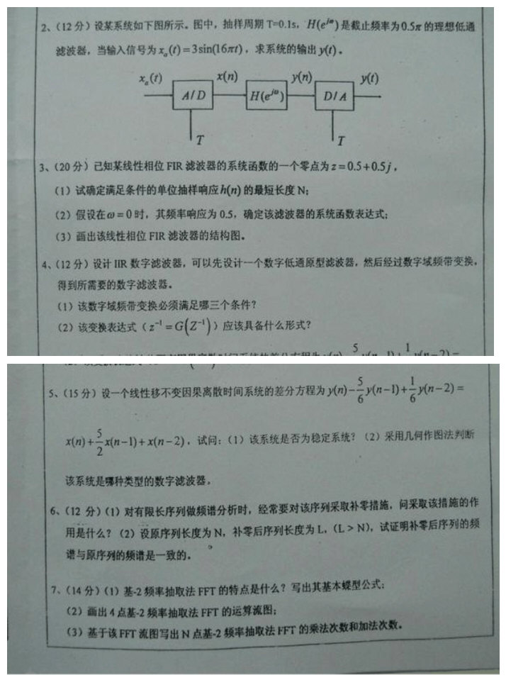 2010年河北工业大学考研复试数字信号处理试题(2)