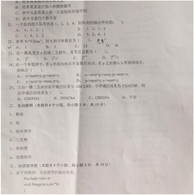 贵州大学2014计算机(程序设计与数据结构)考研真题(3)