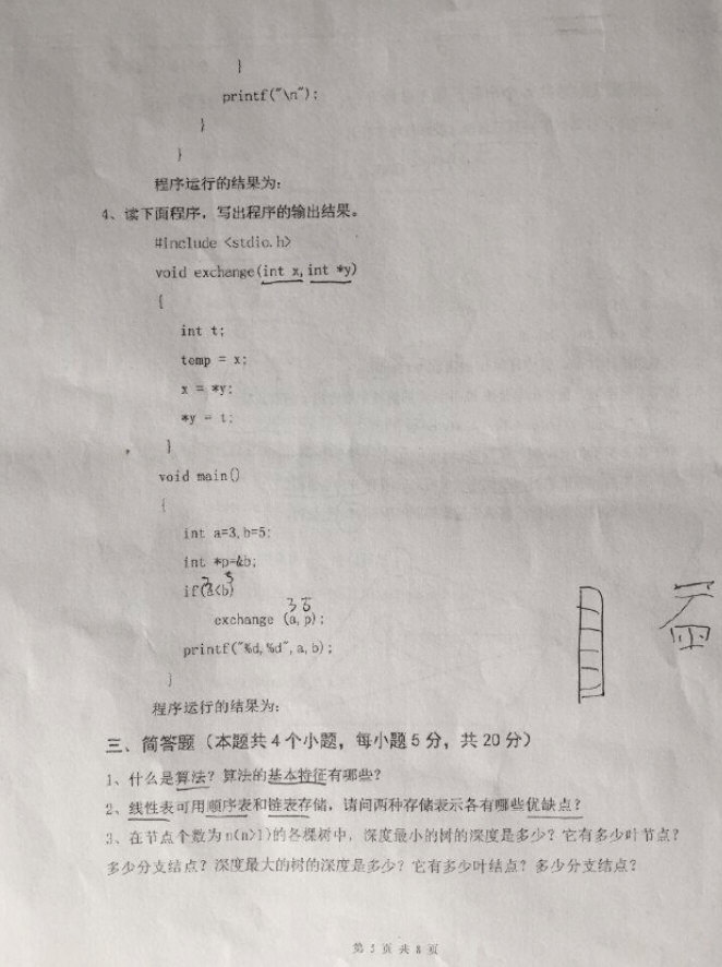 贵州大学2015计算机(程序设计与数据结构)考研真题(5)
