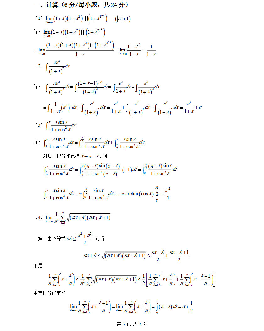 2015年重庆大学数学分析考研真题带详细答案(3)