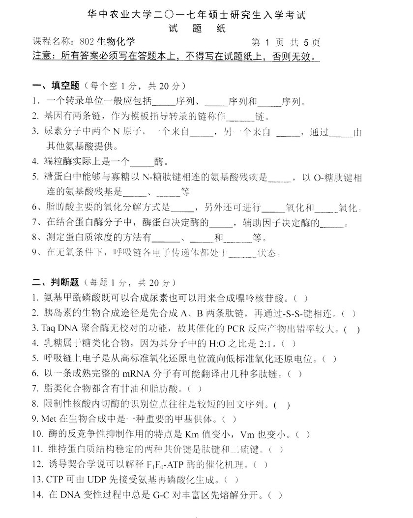专业课大纲 本站小编 免费考研网 2018-01-022018复旦大学医学院生物化学911试题回忆版