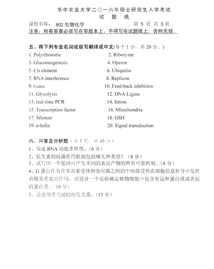 专业课大纲 本站小编 免费考研网 2018-01-022018复旦大学医学院生物化学911试题回忆版