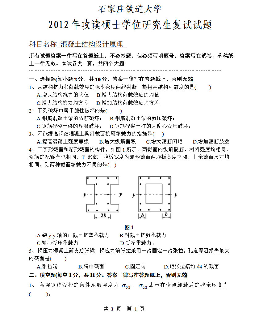 石家庄铁道大学2012-2011年研究生混凝土复试考研试题