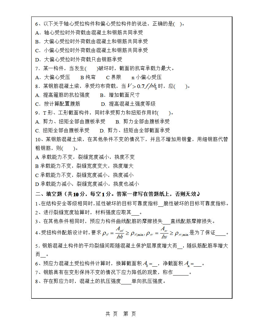 石家庄铁道大学2012-2011年研究生混凝土复试考研试题(7)