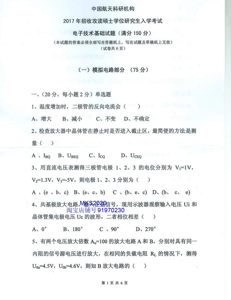 • 2018年山东大学848电子技术基础(模拟与数字)考研全套资料