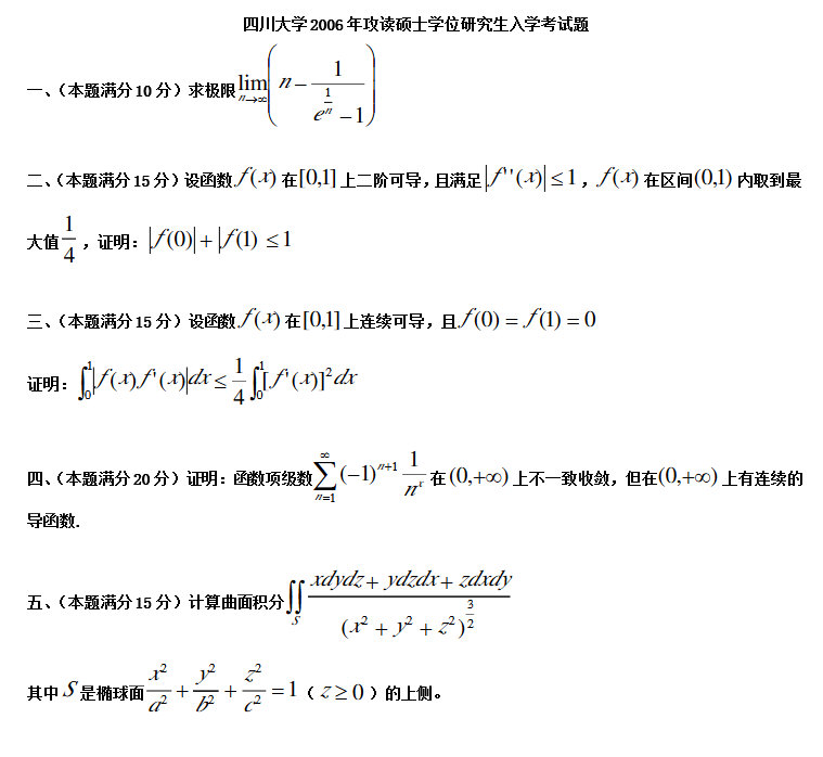 • 2018年中国科学技术大学数学分析初试考试大纲
