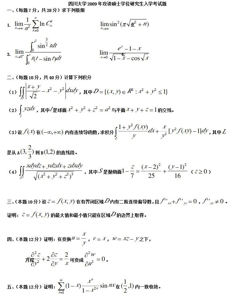 考试科目:611数学分析一、 复习要求:要求学生掌握数学分析课程的基本概念、基本结论与算法,能够运用数学分析的理论求解和证明相关命题。二、主要复习内容:本课程考核内容包括实数的基本理论与极限、单变量微积分学,级数论,多变量微积分学、广义积分五大部分组成.实数的基本理论和极限理论部分包括变量与函数,极 ...