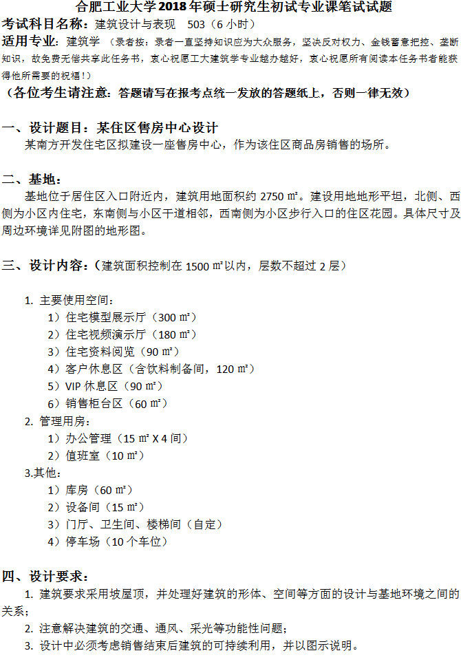 合肥工业大学建筑学2018考研快题真题