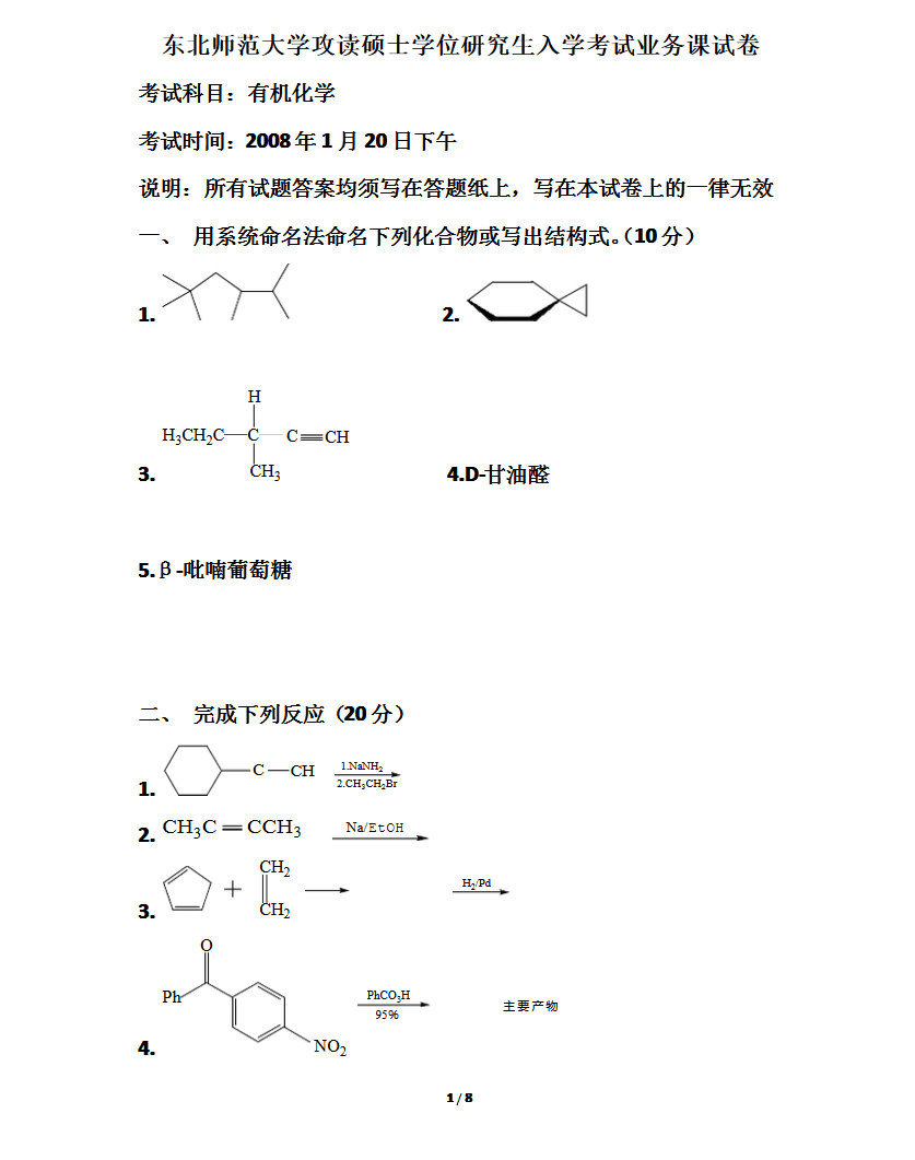 专业课大纲 本站小编 免费考研网 2018-01-02《有机化学》考试大纲一、课程教学内容和要求理解有机化合物和有机化学和学习有机化学重要性;了解有机化学的发展简史;掌握有机化合物的研究程序。掌握烷烃的异构和命名;理解烷烃的结构和烷烃物理性质;掌握烷烃的氧化反应、异构化反应、裂化反应和取代反应。重点和难点:烷烃的卤代反应历程、自由基概念。理解烯烃和炔烃 ...