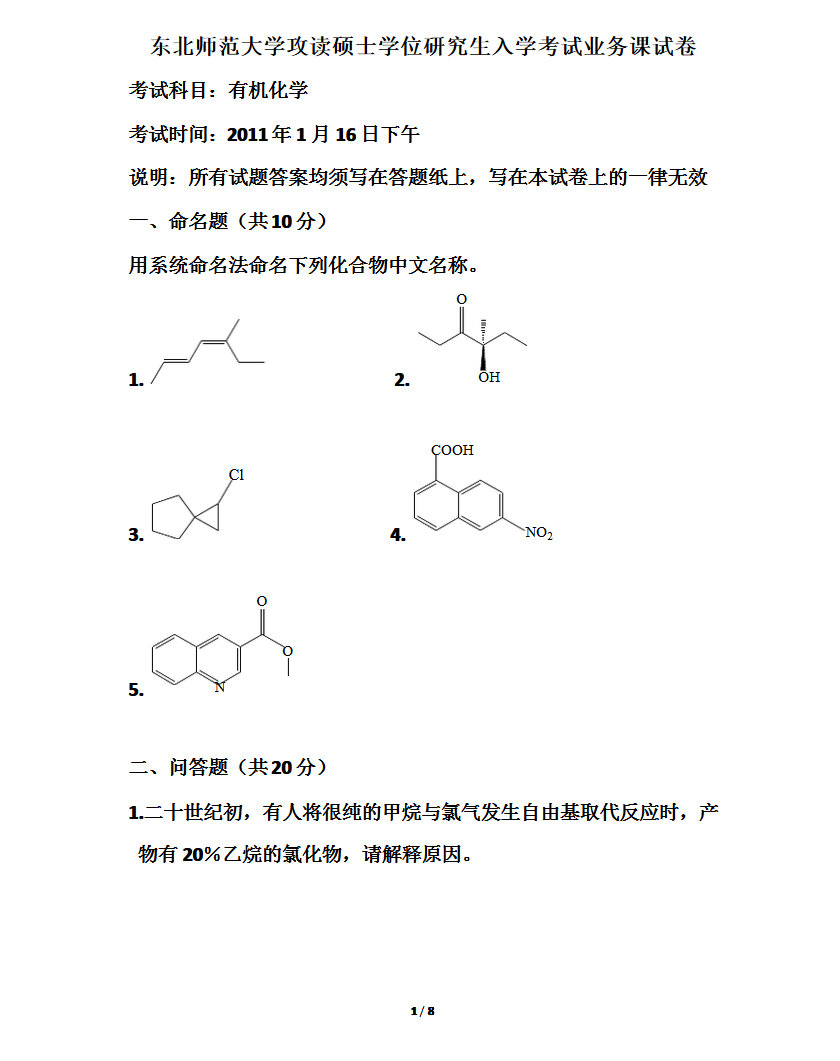 自命题考试大纲有机化学835-有机化学一、考试性质有机化学是化学专业硕士研究生入学统一考试专业科目之一。通过该门课程的考试了解考生对有机化学基本理论和基本概念的掌握程度以及综合运用所学的知识分析相关问题和解决问题的能力与水平,以作为我校选拨硕士研究生的重要依 ...