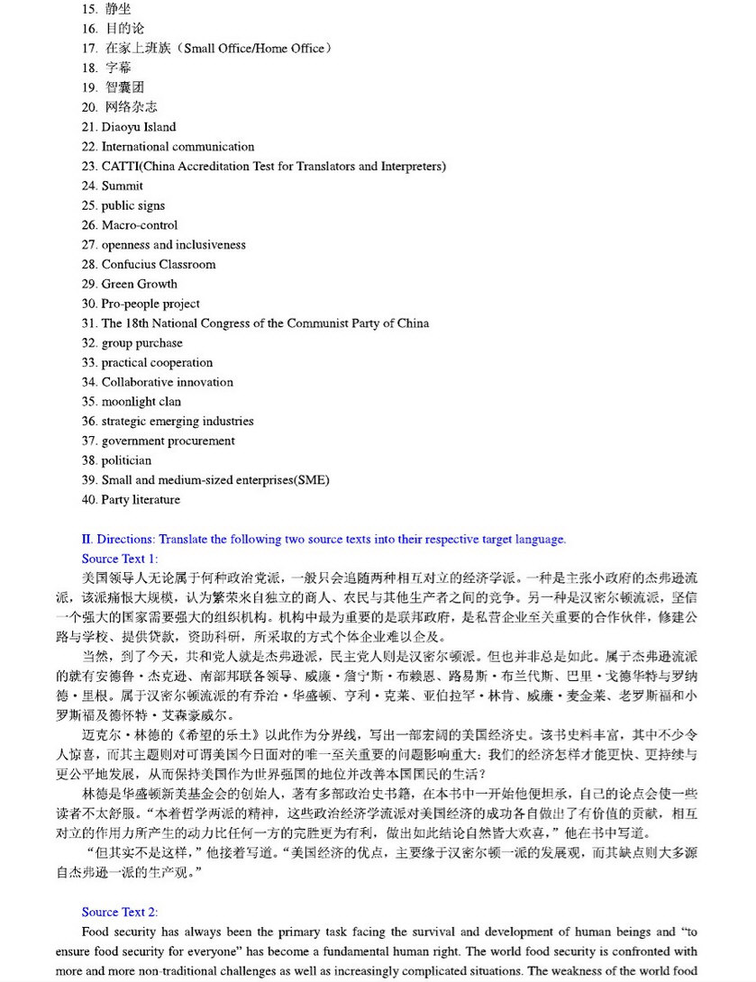 2018年南京大学硕士研究生考试自命题回忆版 02 英语翻译基础(357)(150 points) Ⅰ. English and Chinese Translation: (40 points) 1. AD 2. APEC 3. ASAP 4. Brexit 5. BRICS 6. G20 Summit 7. Internet things 8. netizen 9. shopaholic 10. UNESCO 11. 一带一路倡议 12. ...