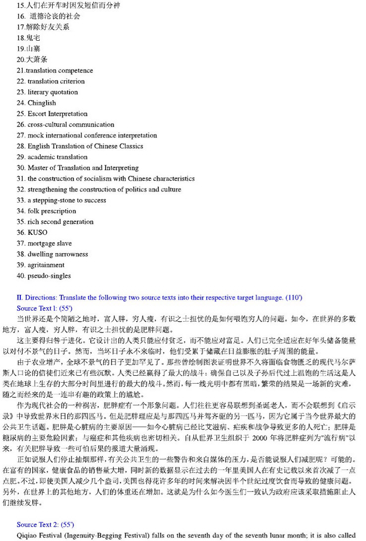 2018年南京大学硕士研究生考试自命题回忆版 02 英语翻译基础(357)(150 points) Ⅰ. English and Chinese Translation: (40 points) 1. AD 2. APEC 3. ASAP 4. Brexit 5. BRICS 6. G20 Summit 7. Internet things 8. netizen 9. shopaholic 10. UNESCO 11. 一带一路倡议 12. ...