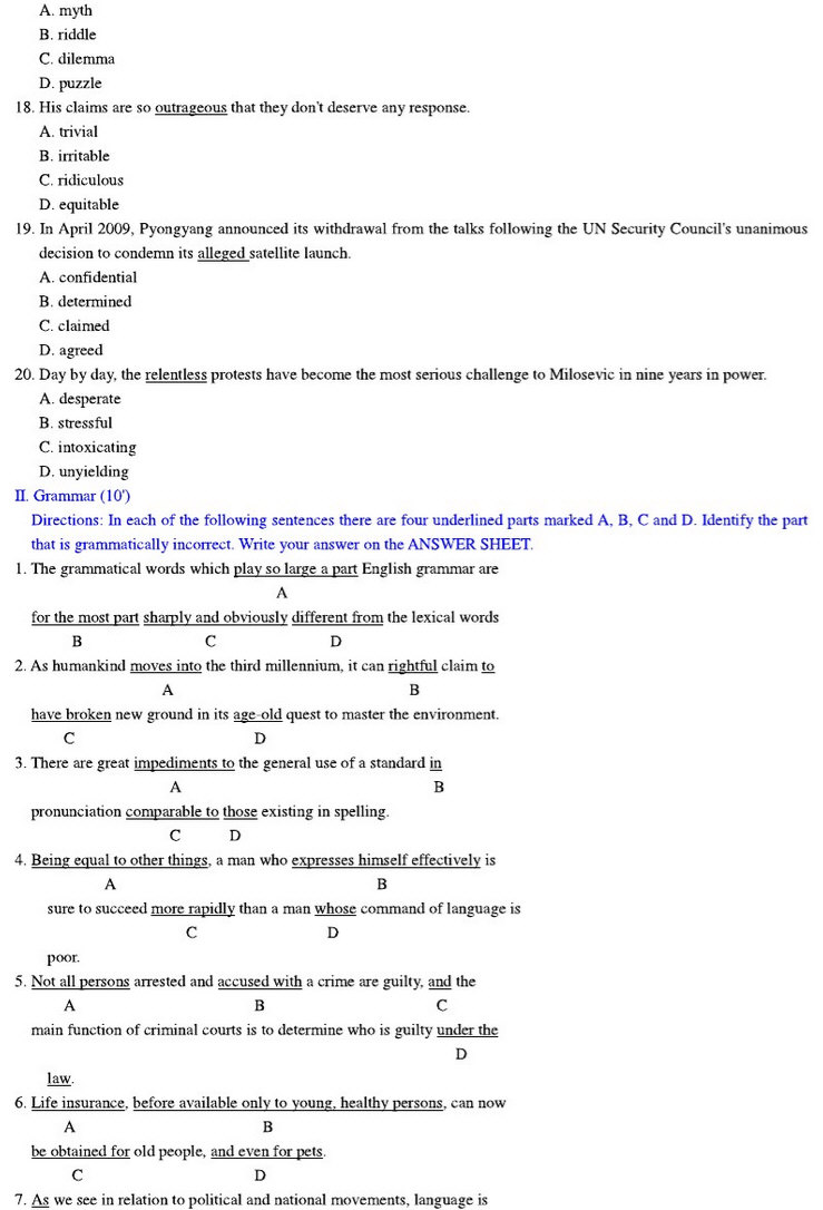 • 2018年北京科技大学MTI 英语翻译基础考研真题