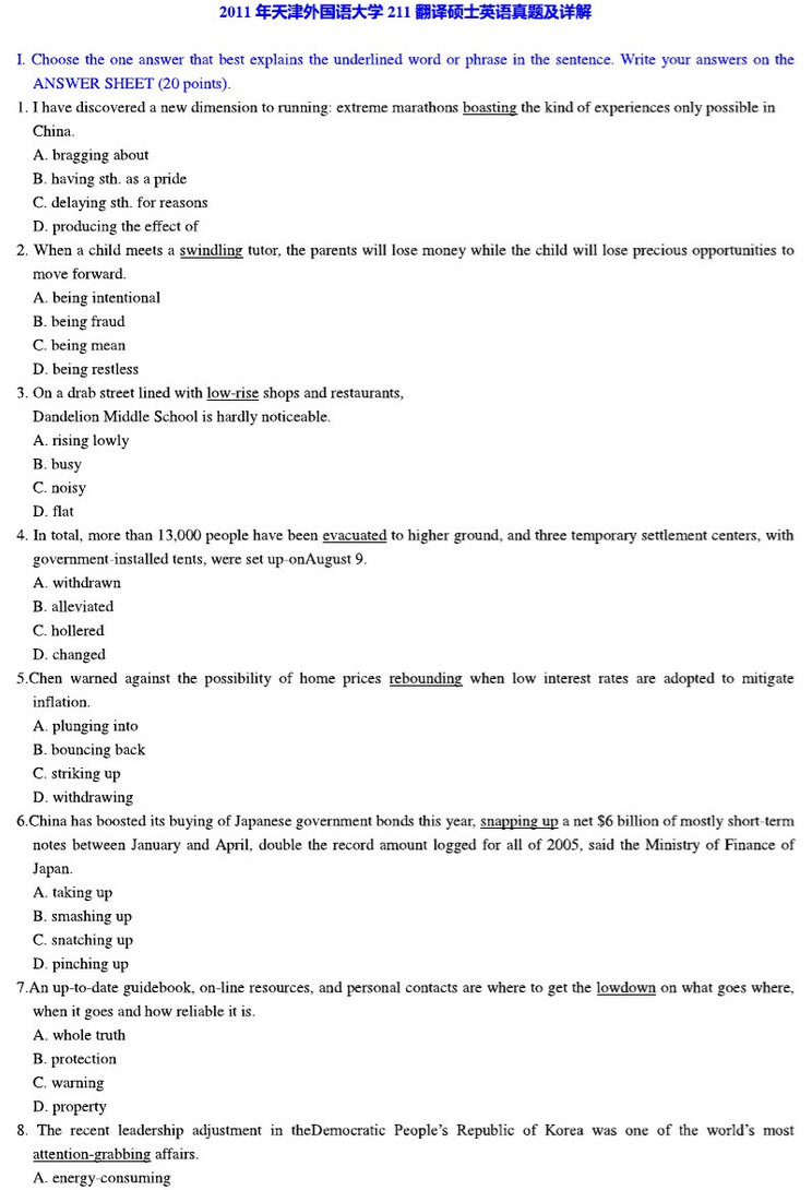 2010年天津外国语大学211翻译硕士英语考研真题与答案