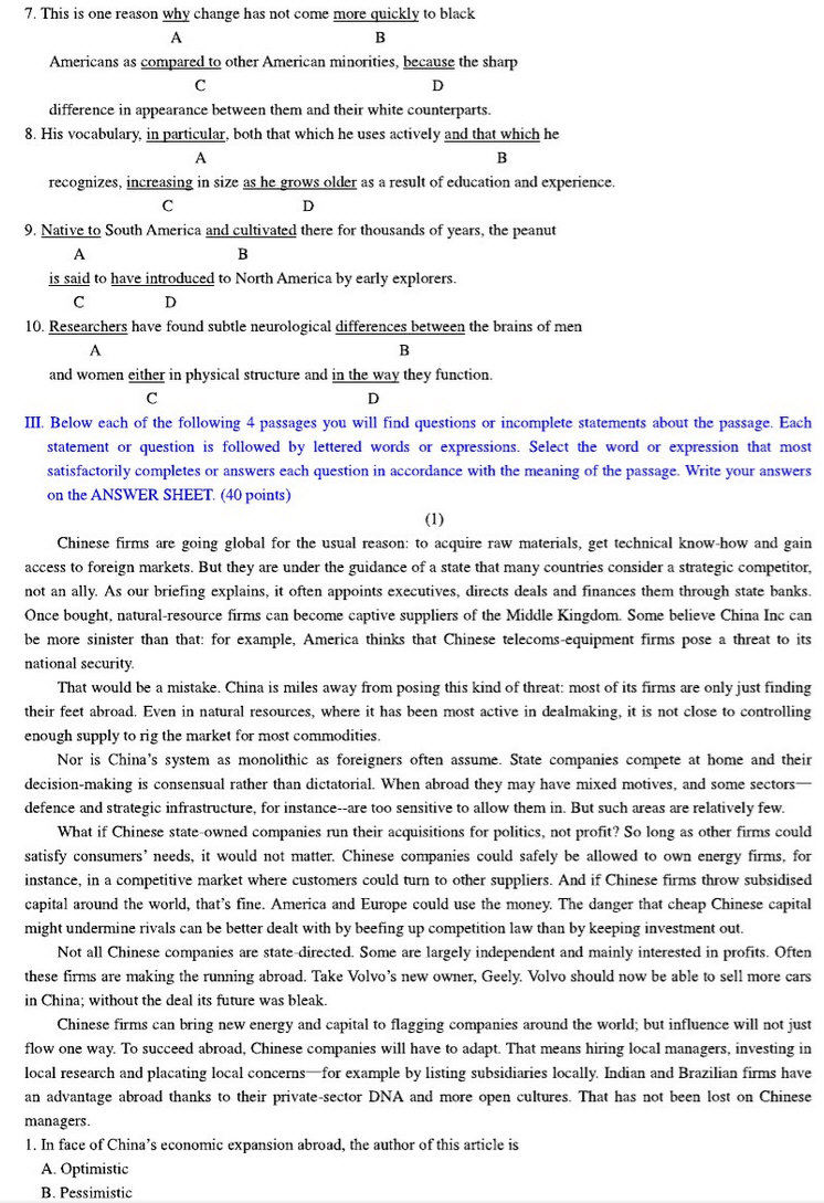 2010年天津外国语大学211翻译硕士英语考研真题与答案(4)