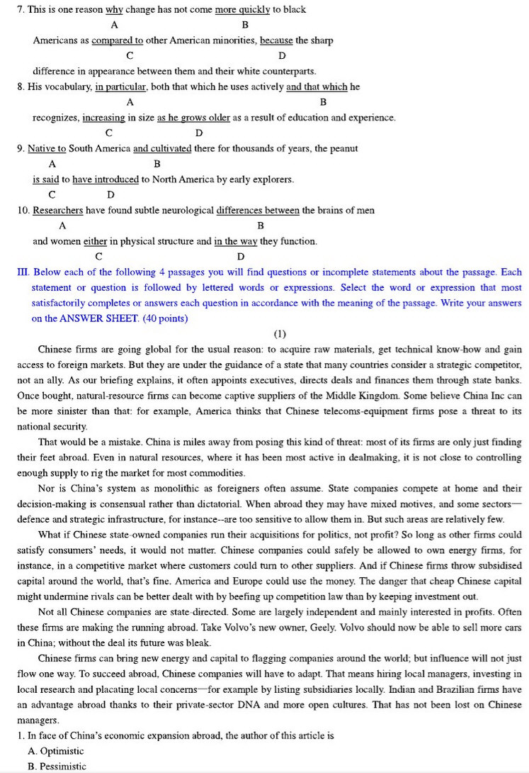 2011年天津外国语大学211翻译硕士英语考研真题与答案(4)