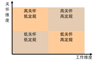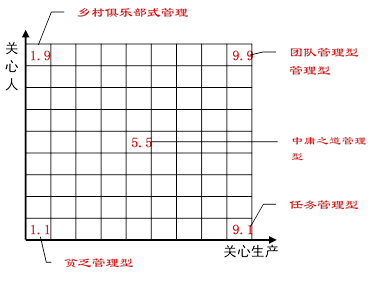 管理方格图将横坐标作为组织关心生产要素,纵坐标作为关心人要素,每个坐标轴细分为九个刻度。