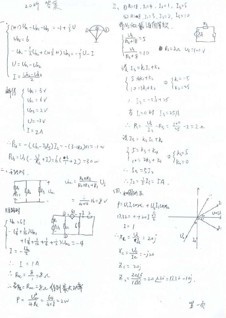 天津大学2909电路考研真题详细答案
