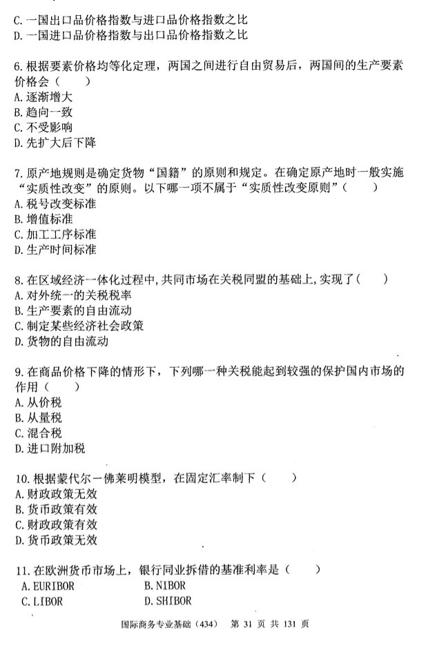 434-国际商务专业基础一、考试性质《国际商务专业基础》是2011年国际商务硕士(MIB)专业学位研究生入学统一考试的科目之一。《国际商务专业基础》考试要力求反映国际商务硕士专业学位的特点,科学、公平、准确、规范地测评考生的专业基础素质和综合能力,以利于选拔具有发展潜力的优秀人才入学,为国家开放型经 ...